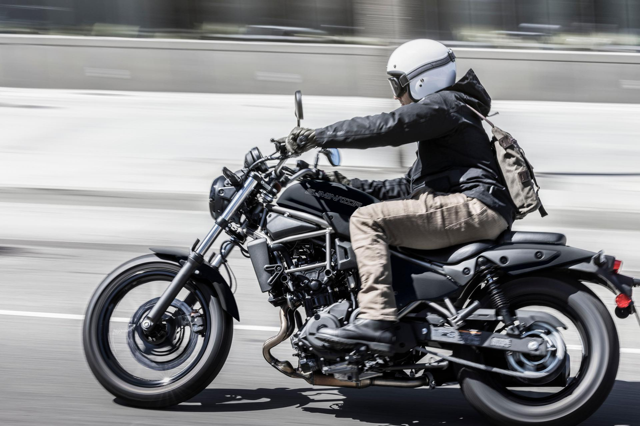 Complementando o carácter amigável para o piloto que trará um sorriso aos rostos dos pilotos que querem desfrutar do êxtase oferecido por uma motocicleta Kawasaki, o Eliminator é apoiado por desempenho activo derivado do seu motor baseado na Ninja e quadro de treliça leve.