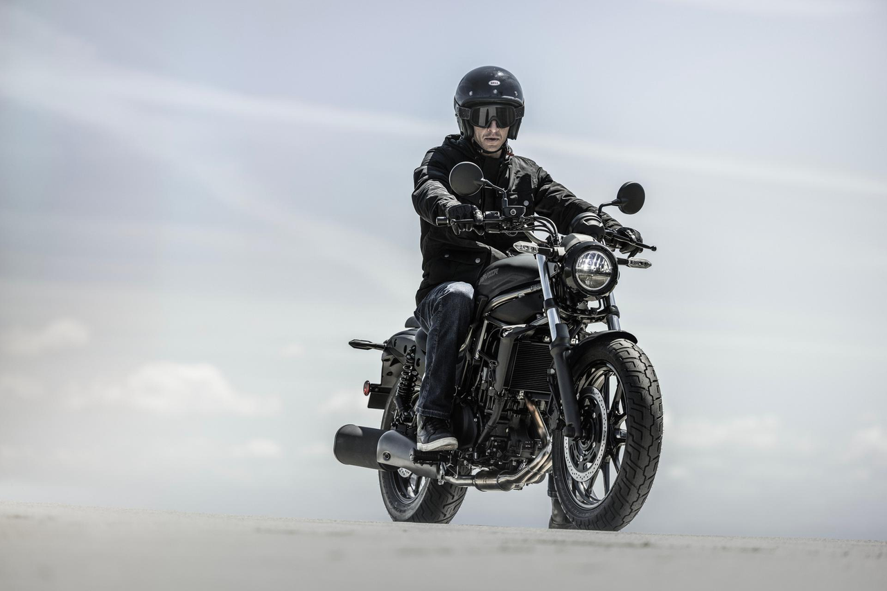 Um design longo e baixo com proporções elegantes é criado pelo depósito de combustível verticalmente fino e pelas linhas horizontais evidentes desde o tubo da cabeça até à traseira original. O design do corpo impressionante, de tamanho médio, sugere um equilíbrio de desempenho ativo e compostura.