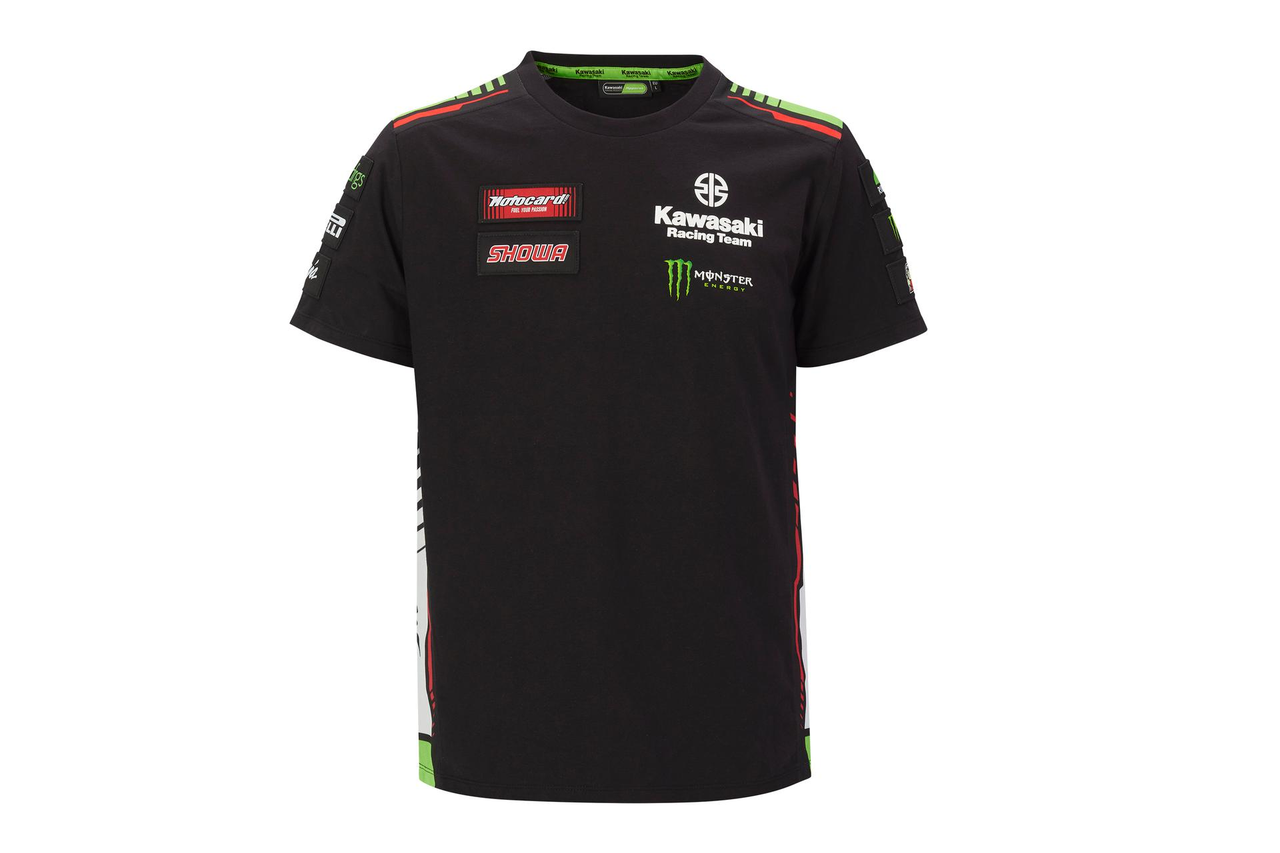 T-shirt de manga curta com gola redonda nas cores da equipa Kawasaki WSBK.